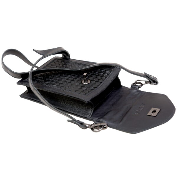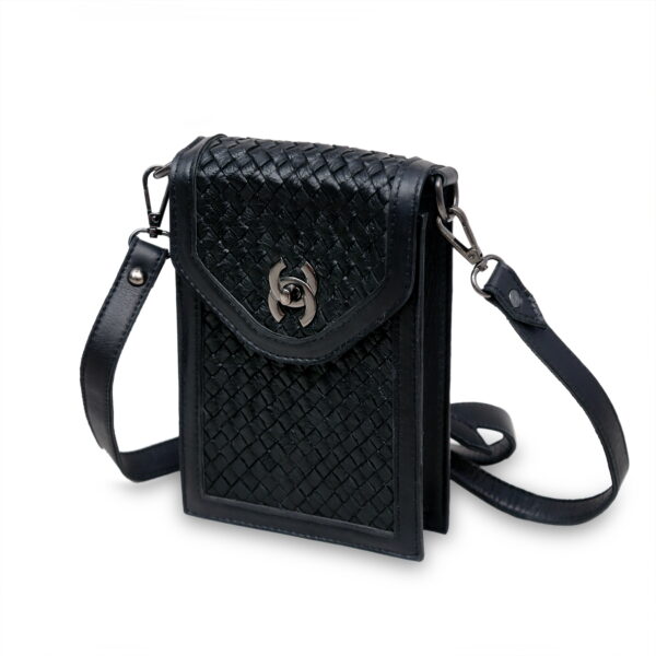 Compact yet functional, this bag is designed to hold your everyday essentials — from your phone and cards to small accessories — all while maintaining a slim, elegant profile. The unique twist-lock closure adds a refined finishing touch, balancing modern design with classic charm.